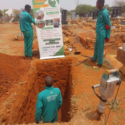 In addition to grave digging and closure services, Diphiri Solutions offers a range of general labor services, including, Building in Graves, cooking and meal preparation, cleaning, and waste management. The company is staffed by a team of highly-skilled and experienced professionals who are dedicated to delivering top-quality services to their clients.